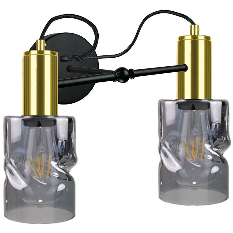 Keter Lighting - 1787 Lampada da parete Inger Nero, Oro, 25 cm, 2x E27 | Finitura: nero, oro | Altezza: 27 cm | Lunghezza: 25 cm | Larghezza: 50 cm | Tipo di lampada: E27 | N. di lampade: 2 | Lampadina inclusa: no | Dimmerabile: Sì - Sono necessarie lampadine dimmerabili | Potenza (max): 60 W