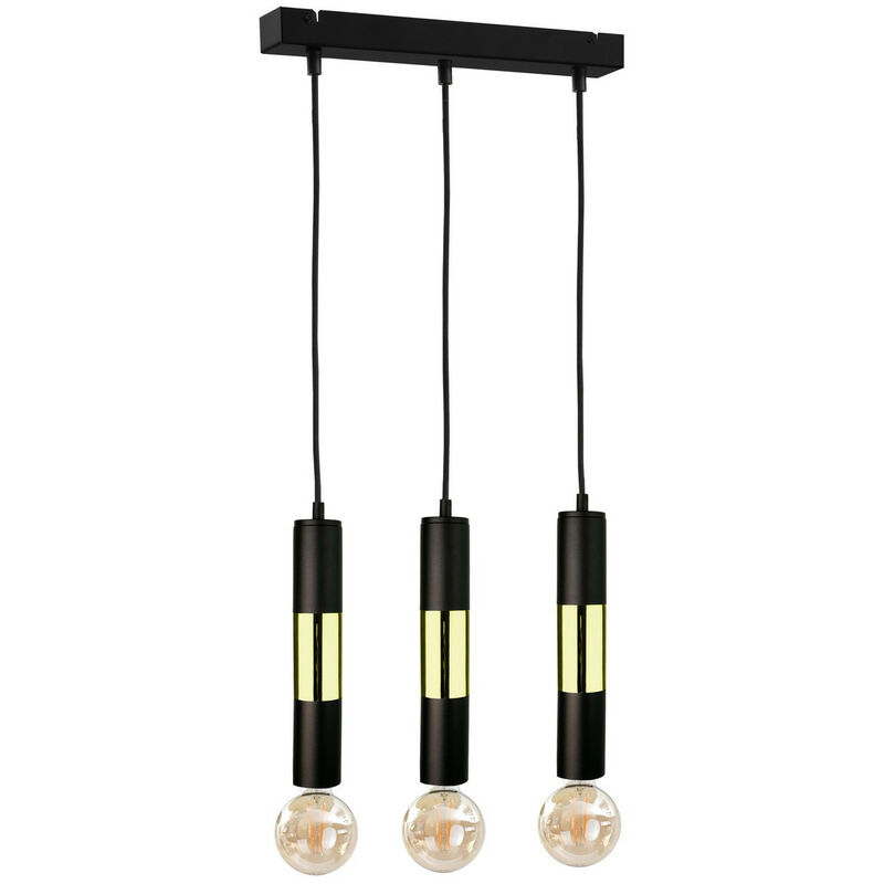 Keter Lighting - 1266 Plafoniera Magnum Bar Sospensione Nera, Oro, 50cm, 3x E27 | Finitura: nero, oro | Altezza: 120 cm | Lunghezza: 50 cm | Larghezza: 5 cm | Tipo di lampada: E27 | N. di lampade: 3 | Lampadina inclusa: no | Dimmerabile: Sì - Sono necessarie lampadine dimmerabili | Potenza (max): 60 W