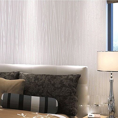 KeTian Modern Fashion Classic Flocking Plain Stripe Curve Carta da parati non tessuta Carta da parati per soggiorno Camera da letto Carta da parati Roll Cream Colore 1.73 'W x 32.8'L =57 sq.ft