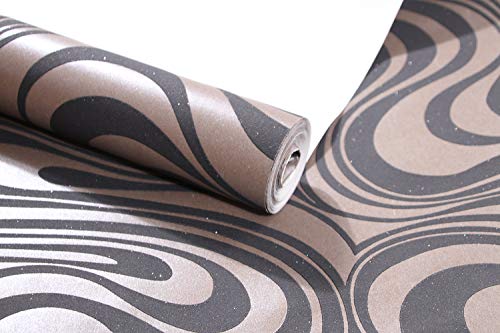 KeTian Modern Luxury 3D Abstract Curve Wallpaper Flocking non tessuto per soggiorno/camera da letto Rotolo di carta da parati 0.7m (2.29 'W) x 8.4m (27.56' L) = 5.88㎡ (63.11 sq.ft) (Black & Browm)