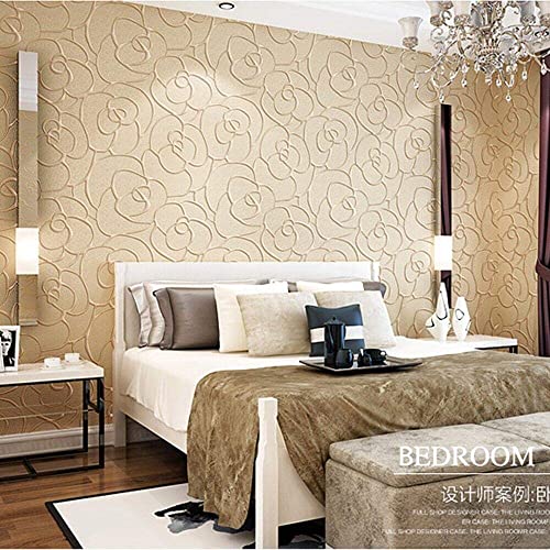 KeTian moderno minimalista 3D Rose Flower non tessuto profondo rilievo strutturato camera da letto soggiorno carta da parati rotolo beige colore 0.53 m (1.73 'W) x 10 m (32.8' L) = 5.3m2 (57 sq.ft)