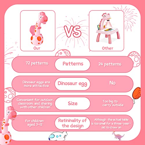 KETIEE Proiettore Disegno per Bambini, Tavolino Disegno con Proiettore Proiettore Intelligente Disegno Proiettore tracciare e disegnare Toy Tavolo da Disegno per Bambini 2 3 4 5 6 Anni(Rosa)
