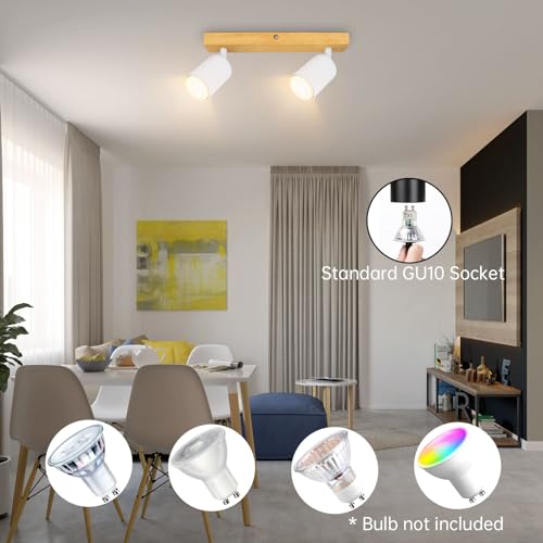 Ketom Faretti da Soffitto Orientabili GU10, Legna Faretti LED Soffitto Bianco, Faretti LED Interno Da Parete, Moderno Plafoniera 2 Luci per Cucin Soggiorno Corridoio, Lampadina non Inclusa