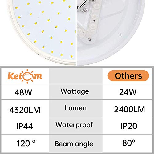 Ketom Plafoniera LED Soffitto Moderna Luce Calda 3000K, 48W Lampada da Soffitto LED, 4320LM Rotondo Plafoniere da Soffitto, Lampada LED Soffitto per Camera da Letto, Soggiorno, Bagno, Ø30CM
