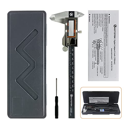 KETOTEK Calibro Digitale 150mm, Calibro a Corsoio Elettronico in Acciaio Inossidabile 6 Pollici, Precisione Micrometro Impermeabile IP54 per Lunghezza, Diametro, Spaziatura e Profondità