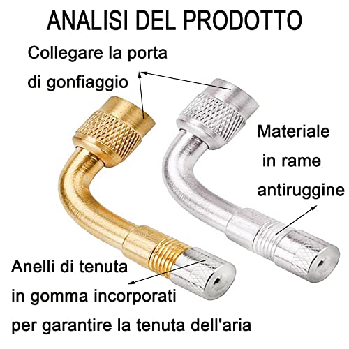 - Design unico: la prolunga della valvola del pneumatico ha un design curvo con una curva a 90° per soddisfare le esigenze quotidiane e la parte inferiore della valvola ruota liberamente, risparmiando tempo e fatica.
