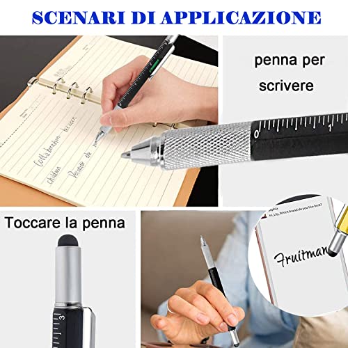 - Penna a sfera multifunzione 6-in-1: La penna tecnologica con diverse funzioni pratiche include: righello universale in pollici/mm, livella a bolla d'aria, cacciavite a croce/piatto, stilo per touch screen, clip da tasca per agganciare la penna in tasca, facile da trasportare e da riporre.