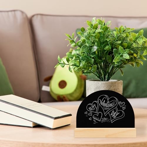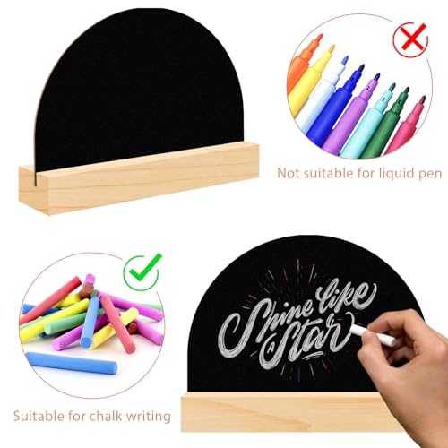 ● [Materiale di Alta Qualità] La staffa è realizzata in legno massello,resistente e non facile da rompere,e la piccola lavagna semicircolare è tagliata al laser,con bordi lisci e senza sbavature.La piccola lavagna può essere inserita nella staffa e il supporto sul tavolo è più stabile.