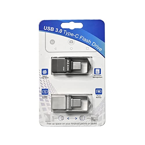 KEXIN 2 Pezzi Chiavetta USB C 64GB Type C Pen Drive OTG USB C Pennetta Chiavette Memoria USB Tipo C Pendrive USB-C Memory Stick Metallo Pennette USB per USB-C Android Smartphone (Nero Argento)