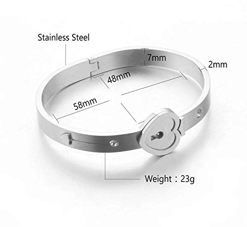 Keybella Bracciale Collana da Coppia 2 Pezzi Acciaio Inossidabile Cuore Chiave San Valentino Regalo (ARGENTO-ROSEGOLD)