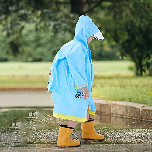 Keyck Impermeabile Bambini Poncho Pioggia Unisex Leggero Cappuccio Antipioggia Giacca Antivento Cartone Animato Auto Impermeabile Tuta Scuola Asilo Ragazzi Ragazza Bimbo Bimba Blu 8-12 Anni