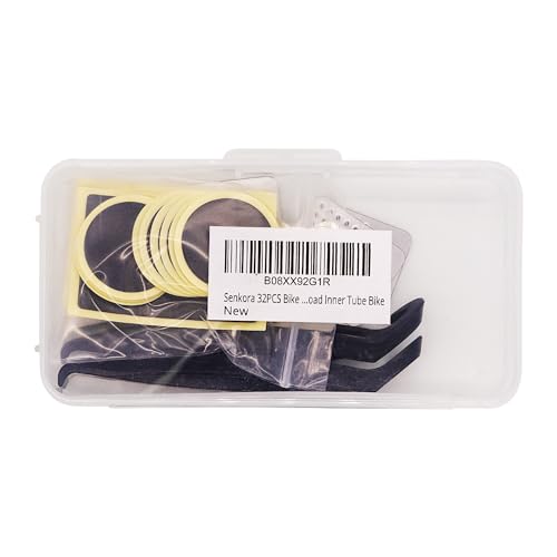 Keyck 32 Pezzi Kit Riparazione per Bici Pneumatici di Bicicletta Autoadesive Forature Camera d'Aria con Kit di Patch Gomma Senza Colla con Raspa Metallo e Custodia Portatile