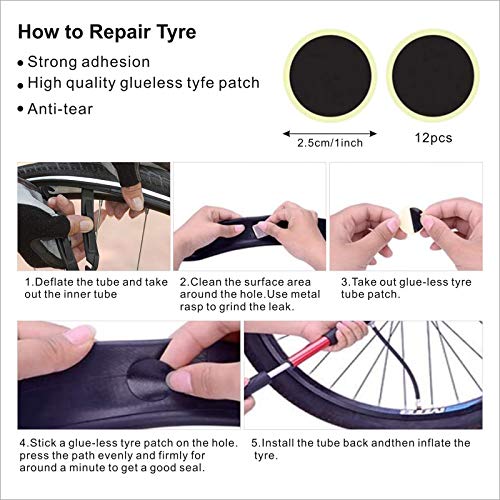 [Materiale durevole] La toppa non adesiva è realizzata in gomma, materiale resistente e impermeabile, con una buona elasticità, adatta per le torsioni e le svolte della camera d'aria, la lima di metallo ha un ampio design a trucioli, puoi usare qualsiasi Stick it sulla camera d'aria del pneumatico a condizione di colla, in modo che la manutenzione possa essere eseguita più facilmente e rapidamente.