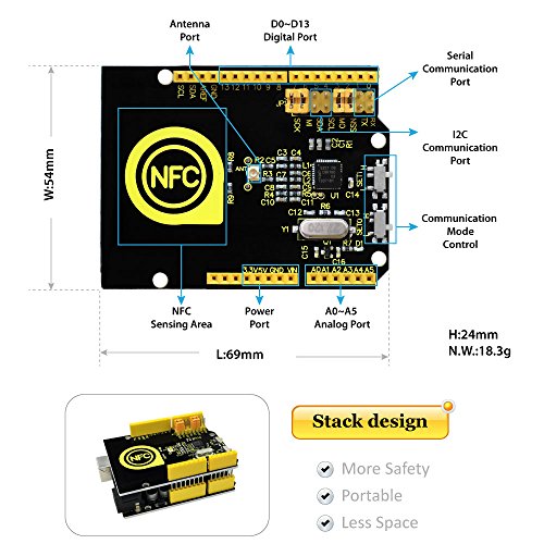 Keyestudio NFC RFID UNO Shield 13.56MHz PN5322 chiave della carta SPI I2C