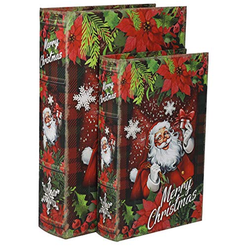 Keyhome KEYHOMESTORE- Coppia scatole Libro portagioie in MDF con Babbo Natale. Altezza 30 e 24 cm. Ideale Come Accessorio di arredo per Interni Camera, Ufficio e Salotto.