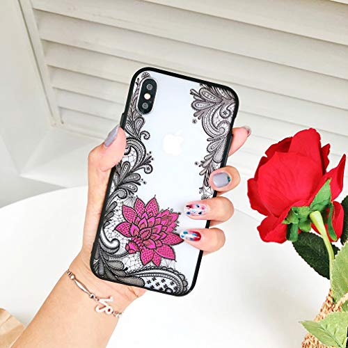 Keyihan Cover Compatibile con iPhone XS Max 6,5" Custodia Antiurto Nero Fiore Sollievo Pizzo Modello Traslucido Opaca Protettiva Case rigida Morbida TPU Silicone Paraurti (Nero Rosa caldo loto 2#)