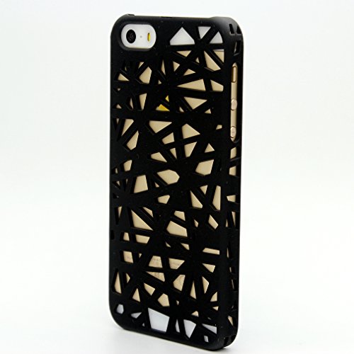 Keyihan Cover Compatibile con iPhone 5 e iPhone 5S e iPhone SE Custodia Antiurto Nido d'uccello Cava Scolpita Trasferimento di Calore Design Protettiva Case rigida (Nero)