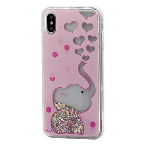 Keyihan Cover per iPhone XS e iPhone X Glitter Liquido Custodia Antiurto Disegni Brillantini Paillettes Protettiva Case Rigida con Morbida Silicone Paraurti 5.8 Pollici (Elefanti e Amore)