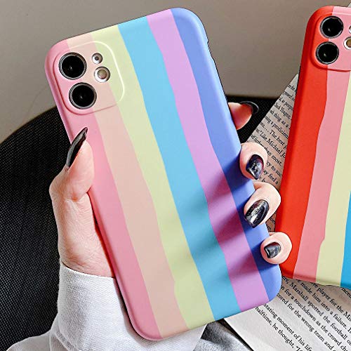 Keyihan Cover per iPhone 13 Pro 6,1 Pollici Custodia Antiurto in Morbido TPU Silicone Disegni Texture Finitura Opaca Slim Protettiva Case Paraurti Anti-Graffio (Modello di Arcobaleno Strisce Rosa)