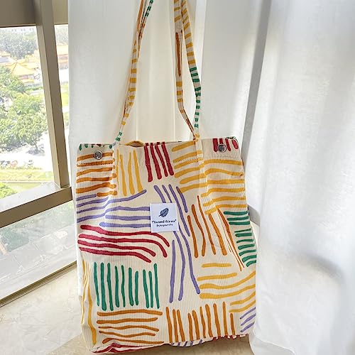 STILE MODA: la stampa a righe colorate della borsa totes in velluto a coste è molto popolare tra le ragazze e le donne. Facile da indossare con gli outfit di tutti i giorni, è una borsa pratica e alla moda.