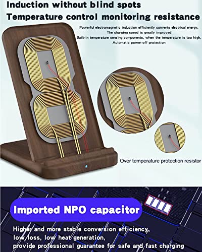 KEYSION Compatible 15W Legno di Noce Caricatore Wireless Stand per iPhone 12 11 Pro Max,QI Ricarica Wireless Veloce 10W per Samsung Galaxy S21 S20 S10 S9 Note 20 Ultra 10 e altro