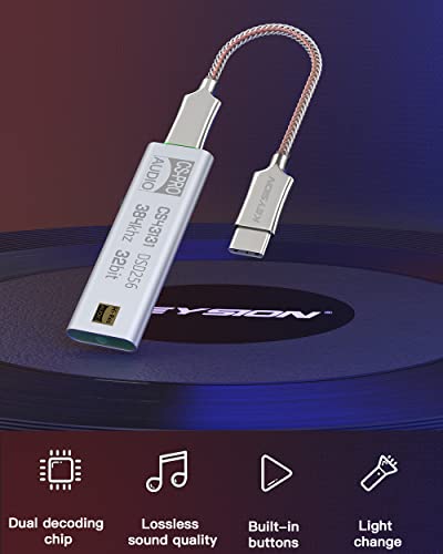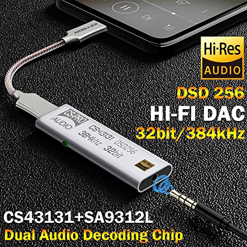 KEYSION DSD256 Hi-Fi Dual Audio Chip Decoder CS43131+SA9312L USB TYPE C a 3,5mm 32bit/384KHz Adattatore amplificatore per cuffie DAC per iPhone MAC Android Windows 10 (Silver)