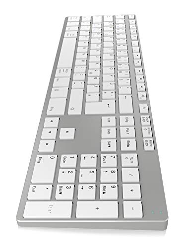 Keysonic Tastiera wireless Bluetooth 60395 per Mac, Windows, Android, Tablet e PC, batteria, multi-canale, argento/bianco
