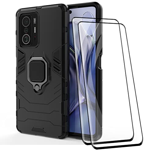 KEYYO Cover + [2 Pezzi] Vetro Temperato per Xiaomi Mi 11T | 11T PRO, TPU/PC Dual Layer Armor Antiurto Protezione Custodia [360° Supporto] con Durezza 9H Pellicola Protettiva, Nero