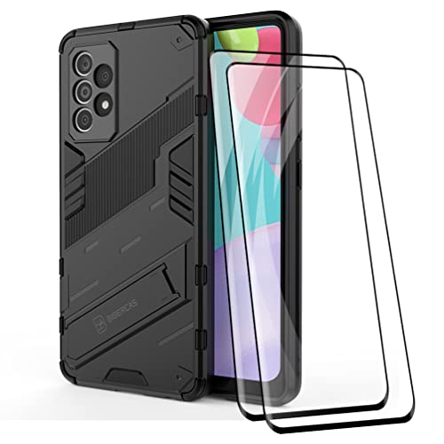Keyyo Cover per Samsung Galaxy A52 | A52 5G | A52S 5G + 2 pellicole protettive per schermo, con supporto, antiurto, custodia ibrida, colore: nero