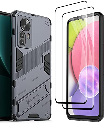 KEYYO Cover per Xiaomi Mi 12 / 12X [ con 2 Vetro Temperato ], Custodia Protettiva con Supporto, Robusto Antiurto TPU Dual Layer Armour Case - Grigio.