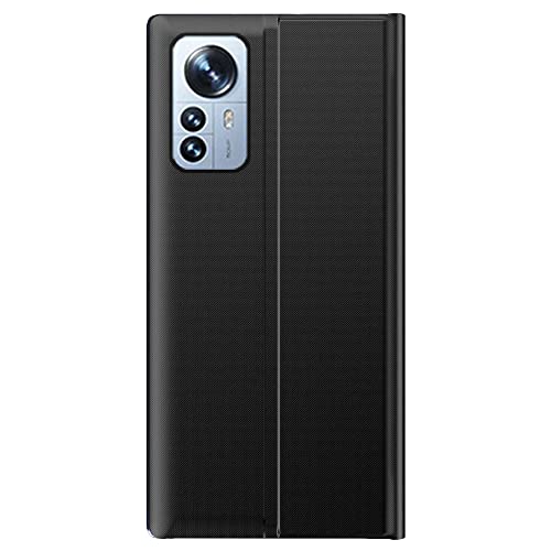 KEYYO Smart Clear View Cover per Xiaomi Mi 12 PRO, Premio Custodia con Una Schermo Finestra, Specchio Elegante Flip Case con Supporto Pieghevole - Nero
