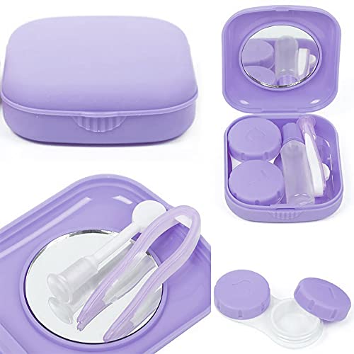 Keyzone - Contenitore per lenti a contatto in plastica con pinzette e ventosa, set da viaggio, per attività all'aperto (lilla)
