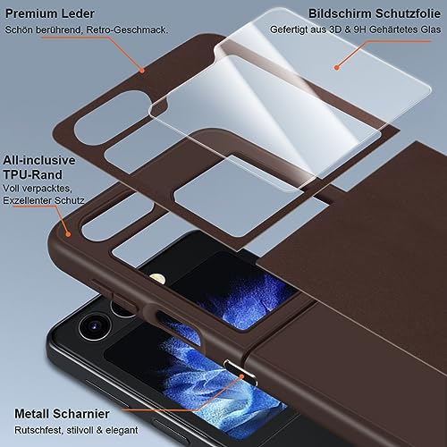 Pellicola protettiva per fotocamera e display: la pellicola protettiva su misura premium è una protezione affidabile per il telefono Z flip5. Ogni custodia in pelle per Galaxy Flip 5 è dotata di 1 pellicola protettiva esterna integrata per lo schermo e una singola pellicola protettiva per fotocamera (caffè Z Flip5 con pellicola protettiva in metallo con bordo nero. ), tutti realizzati con texture 3D e vetro temperato durezza 9H. Ti porta HD e bellissimo effetto visivo.