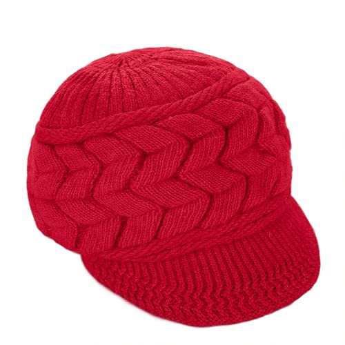 Kfnire Cappelli Invernali per Le Ragazze delle Donne Calde Calza Cappello di Sci di Neve di Neve della Neve con la Visiera (Rosso)