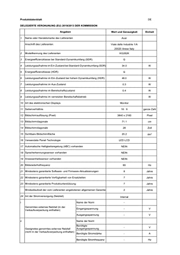 Garanzia del produttore: 24 mesi in caso di vendita e spedizione tramite Amazon. In caso di vendita e spedizione da un fornitore terzo valgono le indicazioni del rispettivo venditore. Nota: con i pannelli IPS, nonostante il rispetto dei più alti standard di produzione, può verificarsi il backlight-Bleeding. Informazioni su questo articolo sono disponibili qui: Antigre. acer/app/answers/detail/a_id/38233 Contenuto della confezione: KG282K Cavo: HDMI