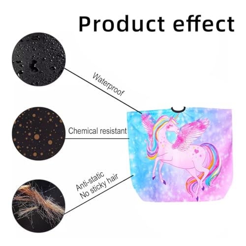 【Multiuso】 Questo grembiule da barbiere per bambini dei cartoni animati è progettato con vivaci motivi di unicorno e colori vivaci, perfetto per parrucchieri, acconciature, tagli di capelli, tinture per capelli, adatto per il salone o l'uso domestico. Non dovrai più preoccuparti del taglio dei capelli dei tuoi bambini a casa.