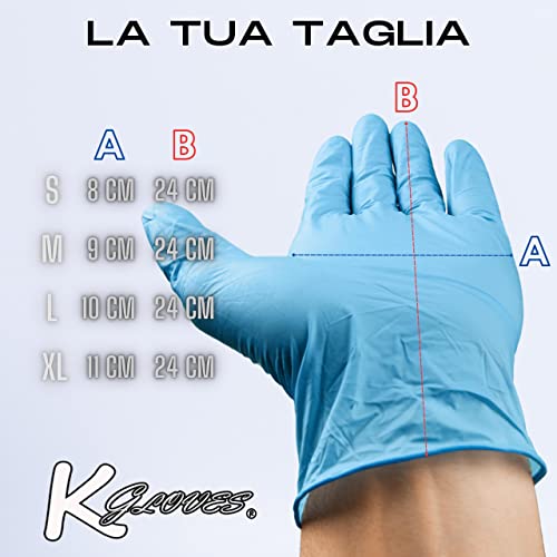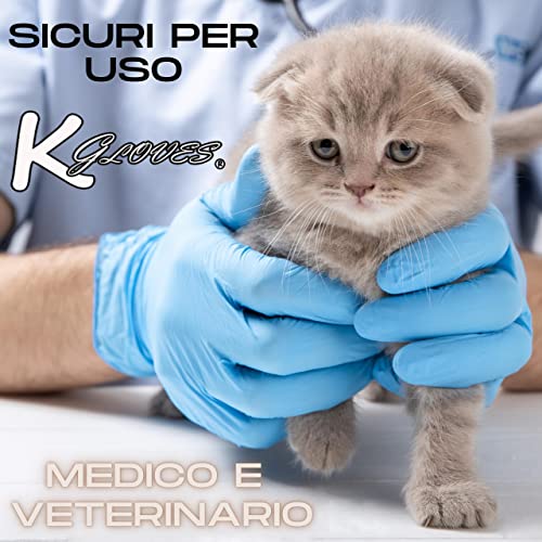 KGloves ® • Guanti Monouso in Nitrile, Senza Lattice, Senza Polvere, Blu, 100 pz, Certificati CE, EN455, Guanti per Alimenti, Medici, Estetista, Pulizia (XL, Blu)