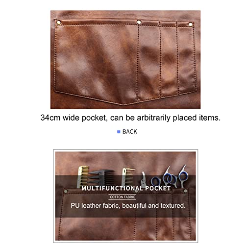 Khaco Grembiule da cuoco per uomo Donna Grembiule in pelle impermeabile con tasche Cinghie incrociate sul retro per cucina BBQ Cooking Barber Barista Grembiule lavorazione manuale