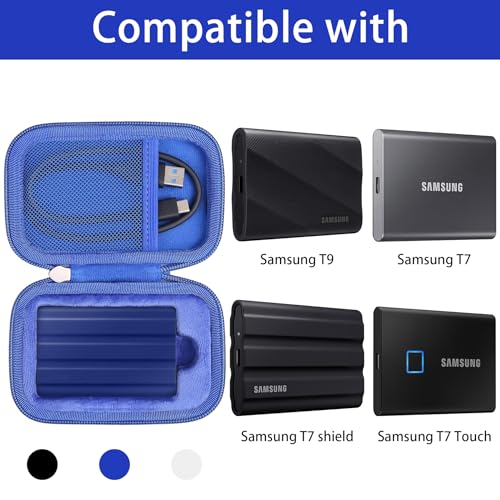 Il design elegante, una custodia progettata per Samsung portatile ssd T9 / T7/ T7 Touch/ T7 Shield, si adatta perfettamente. Puoi mettere l'ssd esterno Samsung in una custodia rigida appositamente progettata per l'ssd portatile Samsung T9 / T7 / T7 Touch/ T7 Shield per una facile portabilità quando esci.