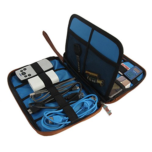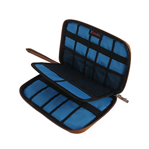 Khanka Portatile Universale Organizzatore accessori Elettronica Custodia da viaggio Borse Custodia per USB drive navetta,USB Cavi,penna,matita e piccolo strumento (Piccolo-Marrone)