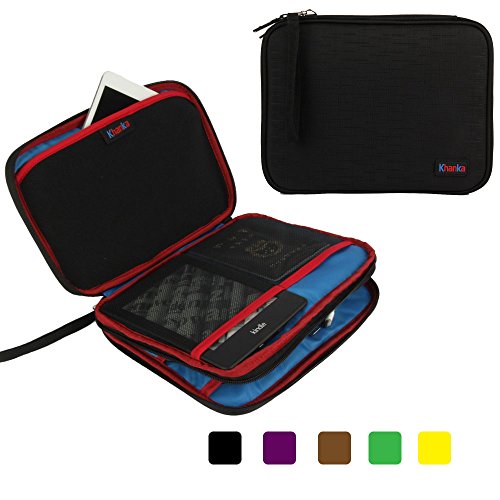 Khanka Universale Organizzatore doppio scomparto Custodia da viaggio Borse Custodia per Samsung M3/WD My Passport Disco rigido/Batteria Esterna/Garmin/Tomtom GPS Navigatore 6",7" inch/Apple iPad Mini/Samsung Tab 4 (7-Inch) e passaporto (Grande-Nero)
