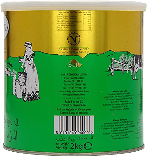 Khanum Burro Ghee 2kg - Cremoso - Naturale - Aggiunge Aroma al Cibo - Sano e Nutriente - Lunga Vita