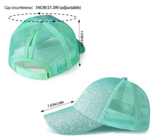 KharmLaddy Cappellini da baseball per bambini Cappelli da baseball con coda di cavallo incrociata con strass arcobaleno sfumato cappello da sole per ragazzi, Bambini Bling Lago Verde, Taglia unica
