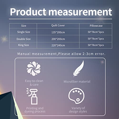 ¡¾Cura facile¡¿ Lavabile in lavatrice, non sbiadisce. Facile da rimuovere con cerniera. Processo di stampa e tintura reattivo rispettoso dell'ambiente, motivo trasparente, la nostra favolosa selezione di colori vivaci non sbiadisce dopo il lavaggio. La superficie liscia e morbida del copripiumino della biancheria da letto, non ¨¨ facile attaccare i capelli, non preoccuparti dei peli di animali domestici sulla trapunta.