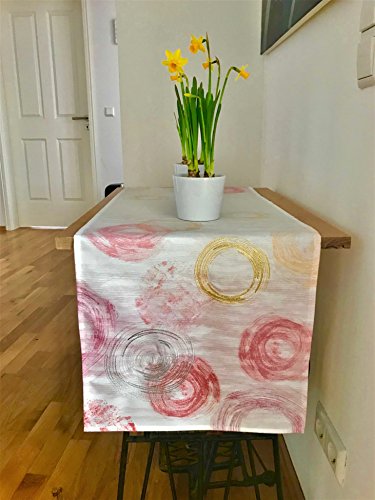 Khevga, runner da tavolo, con motivo a cerchi colorati su sfondo di colore bianco, dimensioni 40 x 140 cm