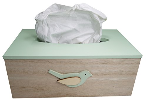 Khevga Scatola porta fazzoletti, Scatola a cosmetici, legno, uccello, verde menta