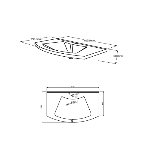 Base: Larghezza 80cm, Altezza 40cm, Profondità 36-48cm. Lavabo: Larghezza 81cm, Profondità 38,5-49cm. Specchio: 60x80cm.