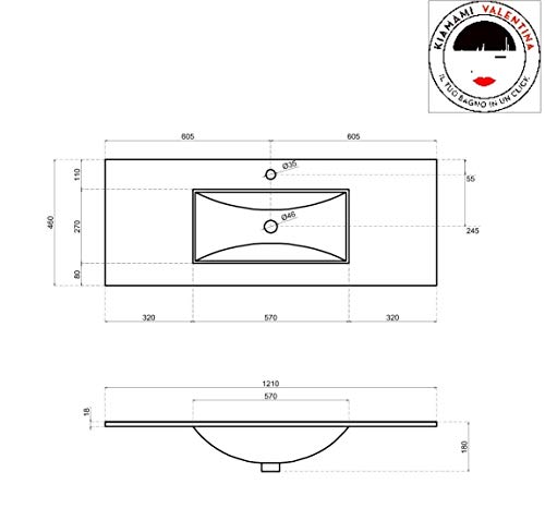 Kiamami Valentina Mobile Bagno Moderno Promenade con LAVABO da 120 CM E Specchio | Sole