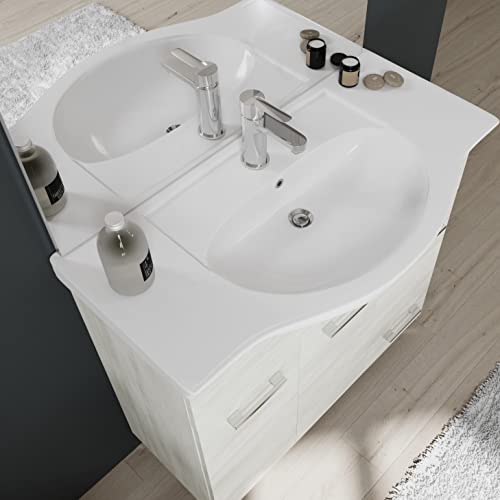 Kiamami Valentina MOBILE BAGNO A TERRA CM85 CON ANTE E CASSETTI QUERCIA BIANCO | RIMINI