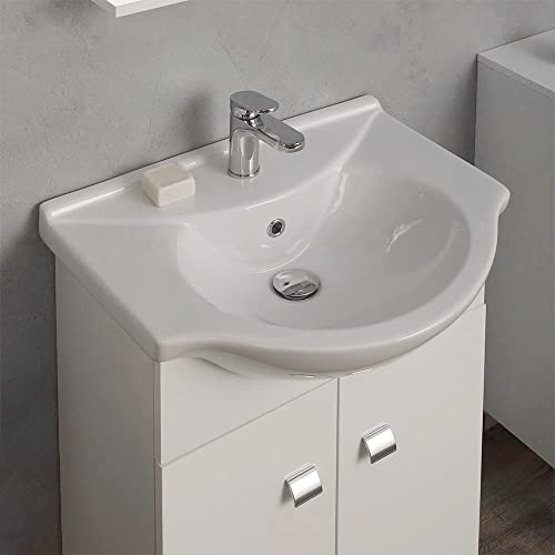 Kiamami Valentina Mobile Bagno A Terra 56 CM con LAVABO E Specchio Bianco | Simply